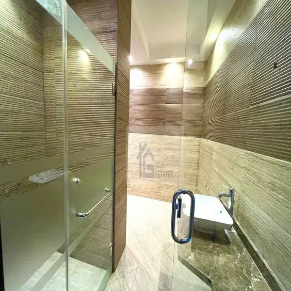 260 meters, first floor, balcony, elevator, 3 bedrooms one of them is master, maid's room with bathroom 🚿 laundry room 🧺 parquet floors and imported materials, kitchen, large air conditioners, built-in wardrobes, balcony overlooking the garden, garage,